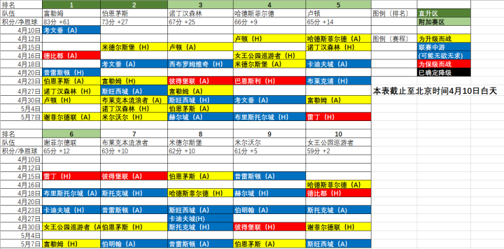 相较于第二名的伯恩茅斯,目前森林的赛程相对来说更加友好一点,但身后的球队同样也在紧追不舍,4月12日便有一场焦点战哈镇-卢顿,两支球队之间的胜者不出意外将会和森林、伯恩茅斯一起争夺一个联赛直升名额。