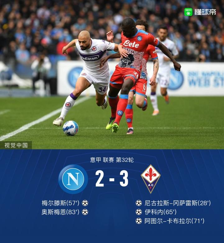 第65分钟,伊科内劲射破门,那不勒斯1-2佛罗伦萨!