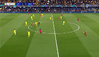 而在进攻端主打拜仁左路也依然蕴含着轮转理念,举两个例子来加以说明。一是比利亚雷亚尔取得进球的那次进攻过程,在此次进攻中先是由中卫保-托雷斯在后场控球寻找一个中场的接球点,在其寻找出球线路时,左前卫科克兰收回到中路有意的缩短与托雷斯的距离试图接球,科克兰的回撤将基米希带出了自己的防区,中场的帕霍霍观察到了这一情况,立即前插占据了基米希上压后在拜仁中场线与后防之间留有的空间。然而保-托雷斯并未将球传给科克兰,而是传给了卡普埃,穆夏拉见状立马前压,防止卡普埃转身,卡普埃并未选择背身拿住球后与穆夏拉进行贴身的身体对抗,而是在穆夏拉赶到前稍微一侧身,不停球直接将托雷斯的传球交给了前插的帕霍霍,帕霍霍注意到穆夏拉前压后留出的横向传球路线,将球横穿交给了右前卫洛塞尔索,成功地将球打到了拜仁的双后腰身后并实现了分边,随后洛塞尔索带球在边路推进,作为双前锋之一的莫雷诺从中锋位置上离开拉到右边路底线附近接球吸引戴维斯的防守,此时的穆夏拉并未完全收到防线里面占据戴维斯外拉后留有的肋部空间,因为其身前是分球后前插的洛塞尔索,身后是赶上支援的右边卫福伊特,他在犹豫是跟外线还是防内切,就在这犹豫间,莫雷诺送出直塞找到洛塞尔索,拜仁的肋部被打穿,洛塞尔索送出倒三角传中,前插的帕霍霍虽然踢疵但是刚好落到埋伏在拜仁中卫前、边卫后的丹朱马,丹朱马顺势一捅,将球打进。纵观这一进球过程,不难发现正是黄潜灵活的前后换位和边中换位才确保了此次进攻的流畅进行,前卫内收回撤,后腰前插,前腰过渡完成串联将球推到前场;前场进攻时则是前锋拉边,前卫和后腰继续进行前插,时刻保证前场进攻有接应点、有突破点、有终结点,这才是一套完整进攻体系所应具备的几点要素。