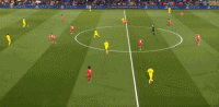 比赛第31分钟时莫雷诺拉边带出防守球员,前卫洛塞尔索继续扮演着前插者的角色。本场比赛类似的场景还有许多,莫雷诺不仅是边锋,有时还能收到中路作为前腰进行接应、分边,而当莫雷诺回撤时,你总能发现前场除了丹朱马,边前卫或是边卫都在进行着积极的换位前插,如此使得黄潜在稳固防守的同时,每一次进攻都颇具威胁,遗憾的是黄潜没有能够进一步扩大比分,他们真的创造出了很多机会。反观拜仁这边,就显得僵硬了许多,中场没有稳健的输送点,对球权的利用不够充分,前场一旦陷入对方的密集防守就没有太多的办法,而比赛后半段在黄潜防守队员出现体能问题,防线有些松动出现空当的情况下,也未能把握住机会。