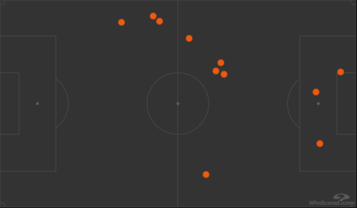 (图)国米前场“三高”的11次成功争顶,可以清楚的看到,大部分高空球的落点,都集中在维罗纳的右路,这也是国米的主动选择,这一侧的边中卫是身高只有187CM的切凯里尼,防空能力远差于另一边的卡萨莱,身高、吨位占据绝对上风的哲科,也顺利的帮助国米抢到了“制空权”。