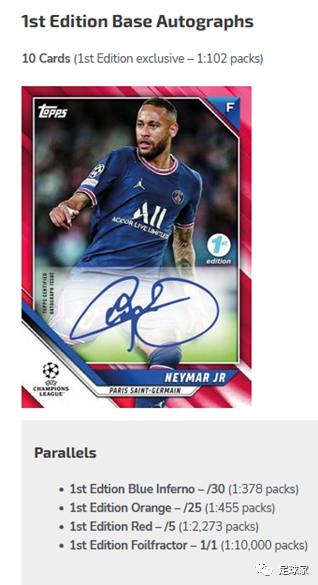 所以总结下来就是,三种版本的Topps欧冠正统系列对于不同的配置有不同的倾向性。如果你对平行带编,特别是低编有需求,适合购买先行版;如果你对特卡更感兴趣,特别是有凑套的需求,适合购买手雷盒,这样成本更低;如果你追求的是签字,那么Hobby盒是不二的选择。