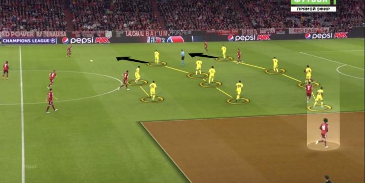 纳格尔斯曼本赛季一度在进攻和防守转换间,切换球队三中卫和四后卫的非对称阵型,引发了诸多媒体的讨论。而埃梅里更甚,比利亚雷亚尔442起步,但是科奎林经常来到中场中路以增加防守时的中场密度,进攻中阵型一度变为433,洛塞尔索则经常在退防过程中担任边后卫的位置,丹朱马则回撤,形成541的防守阵型,变阵无缝衔接,在比利亚雷亚尔如齿轮般啮合且运转流畅的体系下,拜仁无所适从。两回合拜仁的射正比分别为22∶4和23∶4,射正成功率低得出奇,次回合拜仁甚至一度沦为传中队。