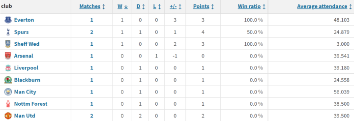 里昂欧战主场与英格兰球队的交锋战绩:仅输给过阿森纳。