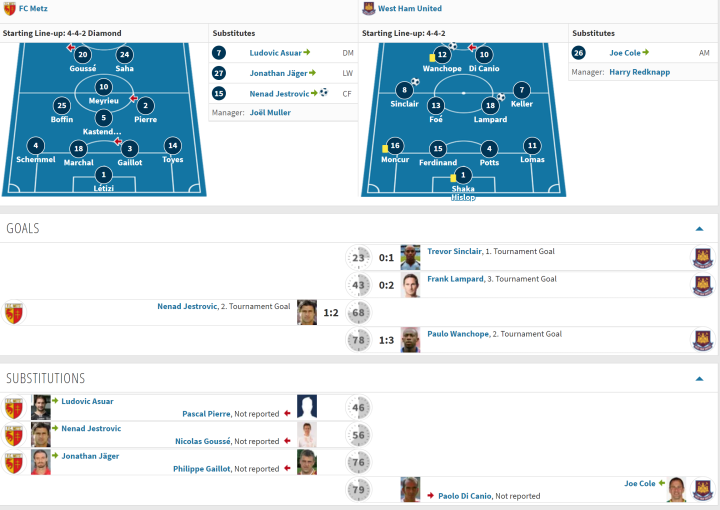 1999年国际托托杯决赛首回合,西汉姆联3:1击败梅斯占得先机。弗兰克·拉帕德在上半场打进了扩大比分优势的一球。