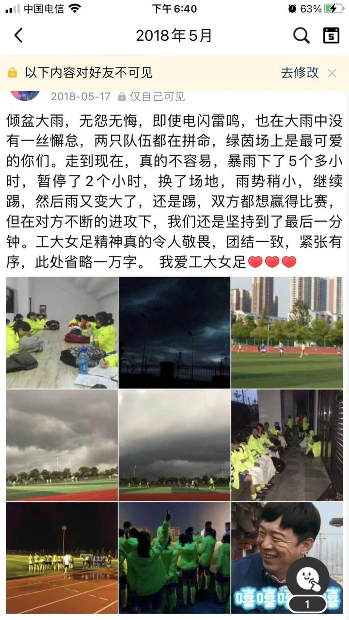 赛后,姚梦发了一条说说来纪念这场取之不易的胜利,这场比赛,在她大学的足球生涯里,是她最难忘的一场比赛,在大雨中,每个人都很拼命,都为了这场比赛而奋斗着,追逐着。当谈及到在自己的大学足球生涯有什么感受的时候,姚梦说:“感受就是足球给你带来的不仅是身体更强壮健康了,获得荣誉,更重要的是有一群和你一起并肩作战的队友,获得最真挚的友谊。现在(尽管我读研了)我还是很想念我本科的那些队友,那些一起待了四年的队友。”是啊,难能忘却的是,那些共同的迈步,那些一起的飞跃,那些我们自己写下的歌章,那些我们曾共同追逐的梦想。