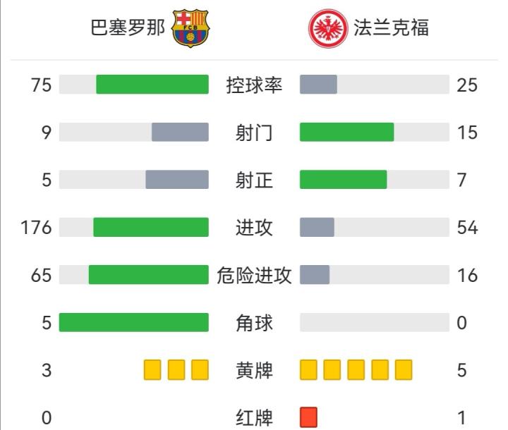 第3分钟,埃里克-加西亚禁区内抱摔林德斯特伦,主裁判果断判罚点球,科斯蒂奇操刀一蹴而就,法兰克福反客为主1-0领先!