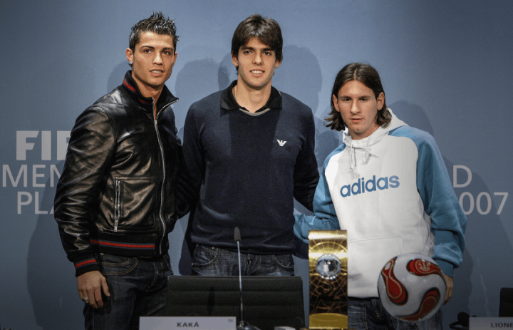 25岁的卡卡,22岁的C罗和20岁的梅西