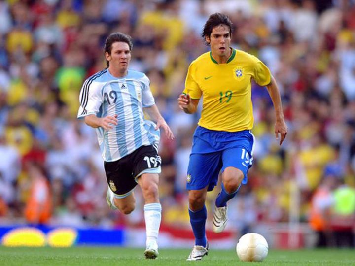2006年9月3日,巴西对阿根廷,卡卡一次再普通不过的过人加速,带球突袭进球,在他身后同样狂奔防守的就是梅西