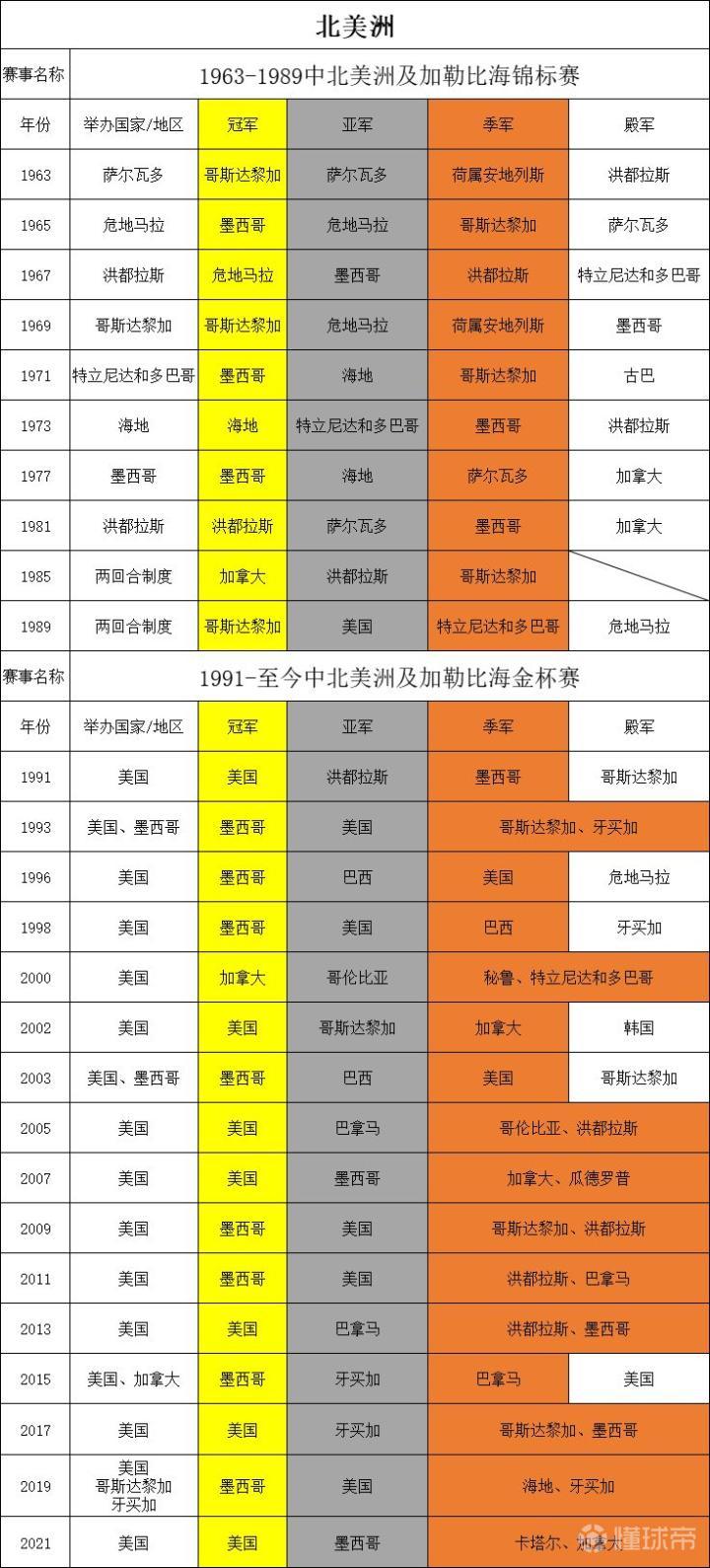 历届美洲金杯冠军中北美洲及加勒比海地区金杯赛(C...