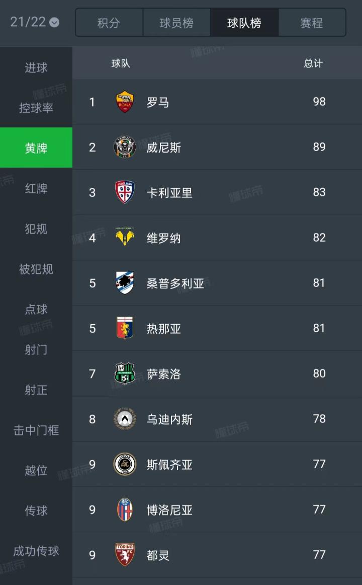 维罗纳前31轮联赛,82黄,场均2.65张黄卡。