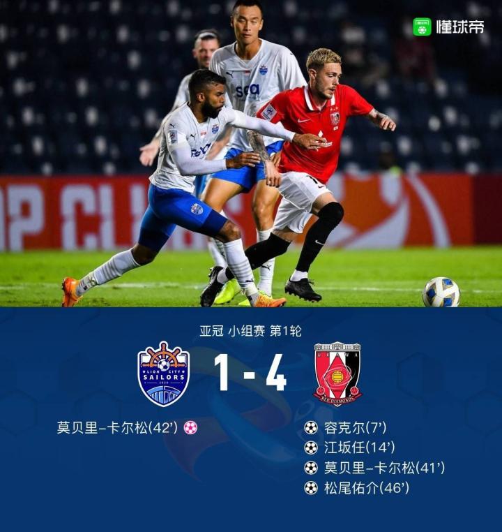狮城水手1-4浦和红钻,江坂任、松尾佑介传射,卡尔松乌龙
