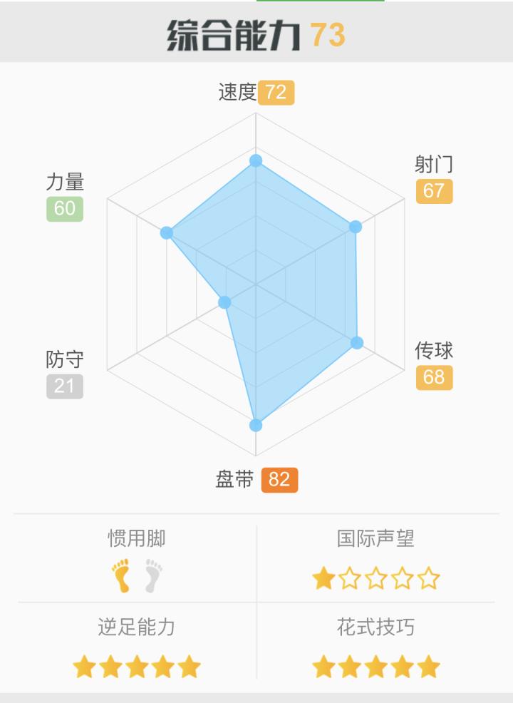 每日FIFA妖人推荐:切尔基。里昂天才,18岁能...FIFA妖人球探 @懂球帝2022-04-16 16:41每日FIFA妖人推荐:切尔基。 里昂天才,18岁能力值73,潜力88。 优点:五花五逆,86盘带,84敏捷,84平衡,左脚将,价格便宜。 缺点:速度70,加速75,射门64,耐力55,强壮66。 总结:盘带稳,手感佳,速度一般,建议从边锋改成前腰。展开更多