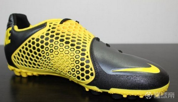 对于球鞋其他配置对性能的辅助,我们先来看看波霸一代的鞋底。不得不说,这个TF鞋底还是比较良心,算是波霸专属TF鞋底,其实是TF和Nike早期AG的混合大底。小碎钉排布很密集,质地非常柔软,踩在地上非常舒适,相对普通TF大底有一定的启动优势,不过很遗憾由于没有像现在跑鞋那样的Zoom或者Boost,所以踢久了鞋底难免会裂,那鞋子就基本报废了。其他比较良心的地方,就是前面提到过的侧向鞋带设计,这在碎钉足球鞋中绝对是一大创新,不仅增加了触球面积,对脚背的包裹性显然也更加完美!另外还有一大亮点就是印有“5”字样的鞋舌,既然出乎意料的采用了柔化牛皮,因此这个脚背舒适度简直无与伦比!
