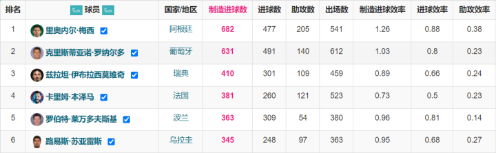 本泽马确实给C罗送出过太多助攻,至今本泽马的西甲助攻已经达到101次,其中最多的被助攻对象是C罗。
