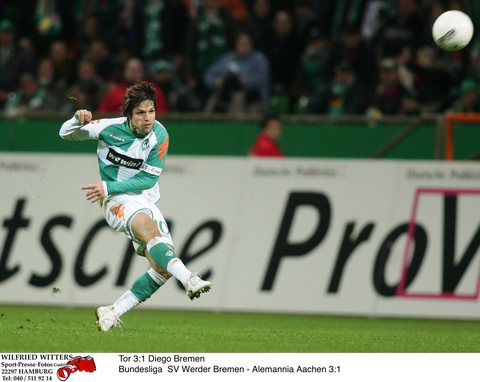 第91分钟,亚琛获得了一个角球,就连门将都冲到了不莱梅的禁区之内,然而不莱梅门将维泽却在第一时间将球打了出去,皮球不偏不倚落在了迭戈的脚下,望着对手空无一人的大门,迭戈在68米开外的地方果断起脚,直入网窝。这粒进球被评为2006/2007赛季的最佳进球。