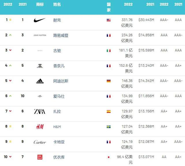 全球服饰品牌价值榜:耐克强势领跑,李宁增速最快