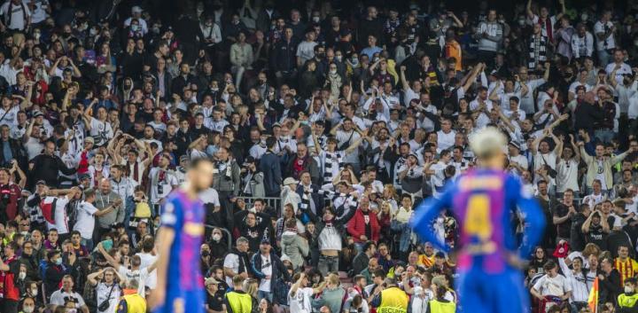 对阵法兰克福的欧联淘汰赛,诺坎普球场融入了一半的客队球迷