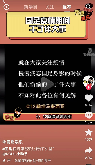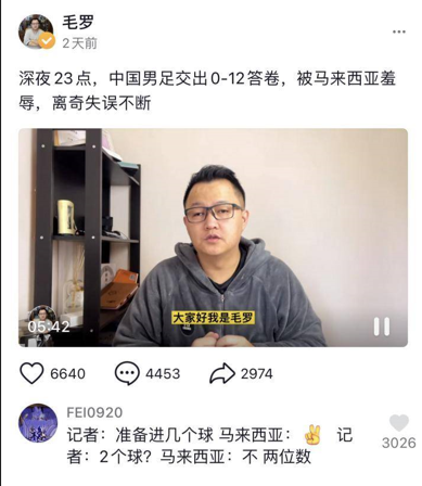 一类是真不懂足球,他们可能是一个做饭或才艺主播,或者主账号是讲篮球的,突然发现中国足球的热点,他们抱着试一试的态度想蹭一蹭,看看效果。另一类绝对是很了解足球的,有的人甚至曾经是足球记者、曾经网站的足球写手。