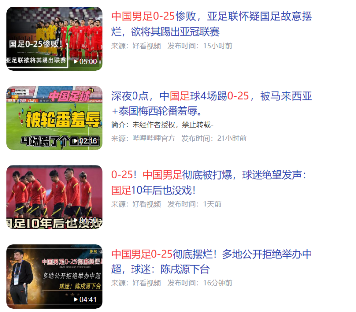 通过在各大社交媒体、搜索平台,短视频平台查阅,发现以0-12和0-25,来移花接木栽赃是国足惨败的视频和文章,多是两类人。