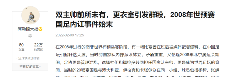 其实关于国足和中国足球的谣言,10多年前就有了,那时多出现在某涯或论坛,以及贴吧上,多以帖子的方式讲述。