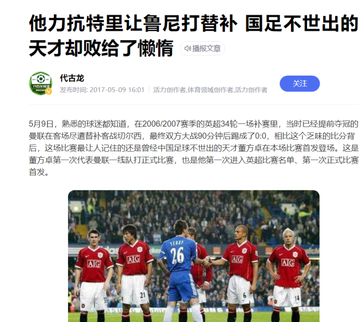 董方卓当年无法留在曼联,也有多个版本:董的50米冲刺在曼联是第一,远超C罗和鲁尼,他天赋太好了,但是太懒了太傲了,连吉格斯都不放在眼里,所以被放弃了。