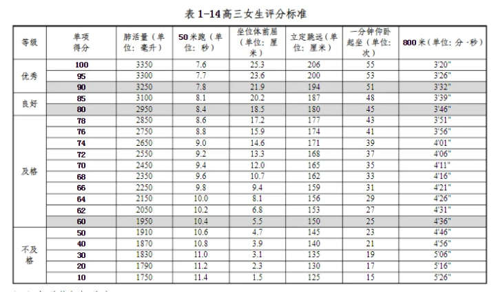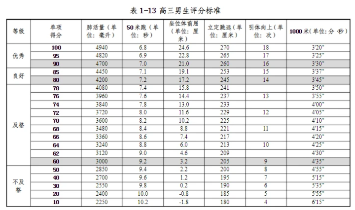 大部分高校体育测试一般基于《国家学生体质健康标准》(2014版)制定,考生可对照高校体育测试项目对照及格标准参考,达到合格线(60分)即可。