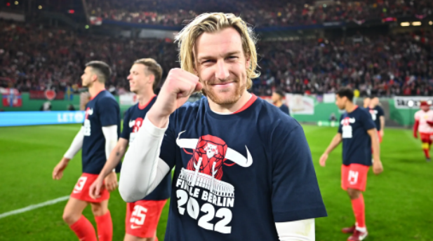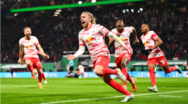 北京时间昨天凌晨,2021-2022赛季德国杯半决赛一场焦点战上演,莱比锡红牛坐镇主场迎战柏林联合。上半场,特里梅尔跑动积极,并在右路送出纵贯全场的横传助贝克尔打破僵局;下半场,恩昆库造成耶克尔禁区内犯规,安德烈·席尔瓦终于不再在12码点失手助队扳平比分。进球后福斯贝里替补登场,在补时第二分钟接亨里希斯传中高高跃起头球破门,莱比锡2:1逆转绝杀柏林联合,连续两年、近四年第三次挺进德国杯决赛!