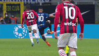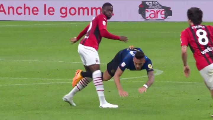 第18分钟,劳塔罗防守定位球时,被特奥在后场放倒,裁判吹罚对手犯规。