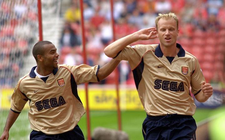 选择这件的话,历史加成会比较多。从曼联手中抢走的英超冠军,那个即将在2年后迎来不败赛季的无敌冠军阵容:博格坎普、皮雷、永贝里、维埃拉、阿什利科尔、还没踢上主力的亨利大帝......