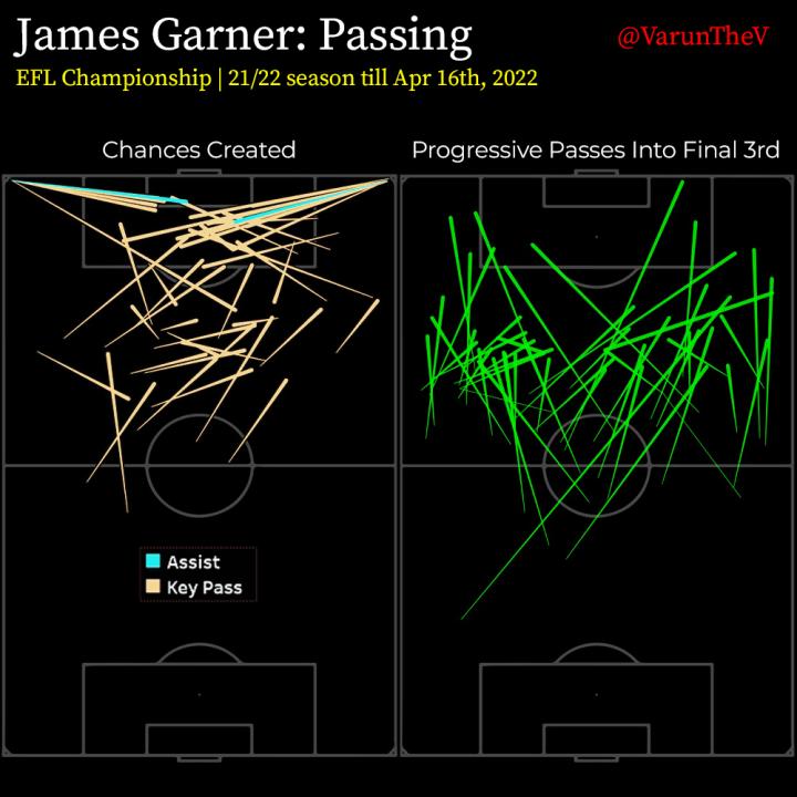 这点也能对上我们的主题,加纳是一名更倾向于打开局面帮助球队推进的B2B中场,而不是拖后组织帮助球队完成进攻发起。他的定位球能力和在前场的创造力都是进攻端的主要武器。