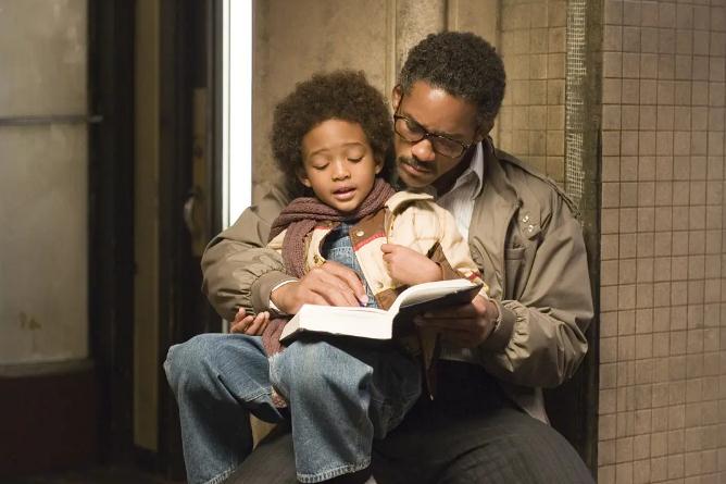克里斯•加纳(威尔·史密斯 Will Smith 饰)用尽全部积蓄买下了高科技治疗仪,到处向医院推销,可是价格高昂,接受的人不多。就算他多努力都无法提供一个良好的生活环境给妻儿,妻子(桑迪·牛顿 Thandie Newton 饰)最终选择离开家。从此他带着儿子克里斯托夫(贾登·史密斯 Jaden Smith 饰)相依为命。克里斯好不容易争取回来一个股票投资公司实习的机会,就算没有报酬,成功机会只有百分之五,他仍努力奋斗,儿子是他的力量。他看尽白眼,与儿子躲在地铁站里的公共厕所里,住在教堂的收容所里…… 他坚信,幸福明天就会来临。