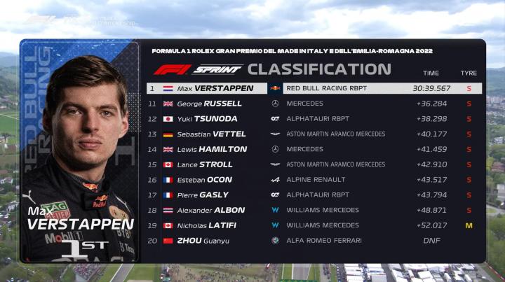 F1伊莫拉站冲刺赛:周冠宇无奈退赛,维斯塔潘拿到正赛杆位