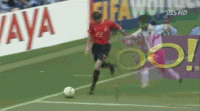 国家队层面是华金永远的遗憾,2002年被卡马乔器重的他在韩日世界杯上大放异彩。与韩国的4强争夺战,华金其实早已经帮助队友杀死比赛,加时赛中,他在右侧狂飙突破后,曾助攻莫伦特斯头球破门,可惜黑哨却判定此球出了底线。