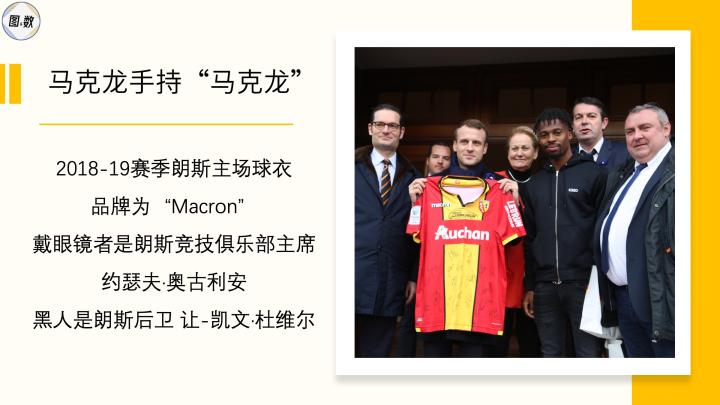 这其实是另一个“马克龙”——与法国总统姓氏拼写完全相同的意大利运动品牌Macron,而且直到上个赛季,他们还是朗斯竞技的球衣赞助商,只是在几个月前由于合同到期,才被德国体育用品巨头彪马所取代。
