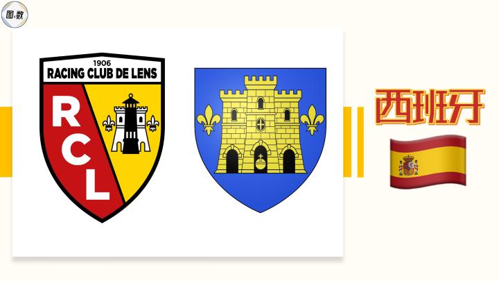朗斯竞技创立于1906年,他们的视觉符号主要使用了红色、金色、黑色和白色,其中白色的城堡和鸢尾花来自朗斯市徽,黑色的矿灯象征着曾经辉煌的煤炭工业,而来源于西班牙国旗的红、金二色在1923年底才被俱乐部引入,当时球队经理和球员发现城市里最后一座西班牙统治时期的教堂已变为废墟,于是在色彩运用方面吸纳了西班牙元素。