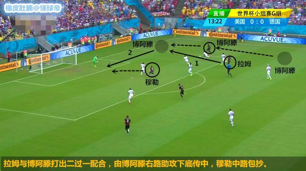 即使弃用了边后卫,即使伤缺了罗伊斯,勒夫依旧坚信边路的冲击将是立体进攻战术体系中不可或缺的一环。德国队在三场比赛中,博阿滕与赫韦德斯虽然是中卫出身,但依旧在战术思想的指导下,经常前插助攻。博阿滕以传中为主要任务,赫韦德斯则更多的以参与前场配合或争抢落点为任务。