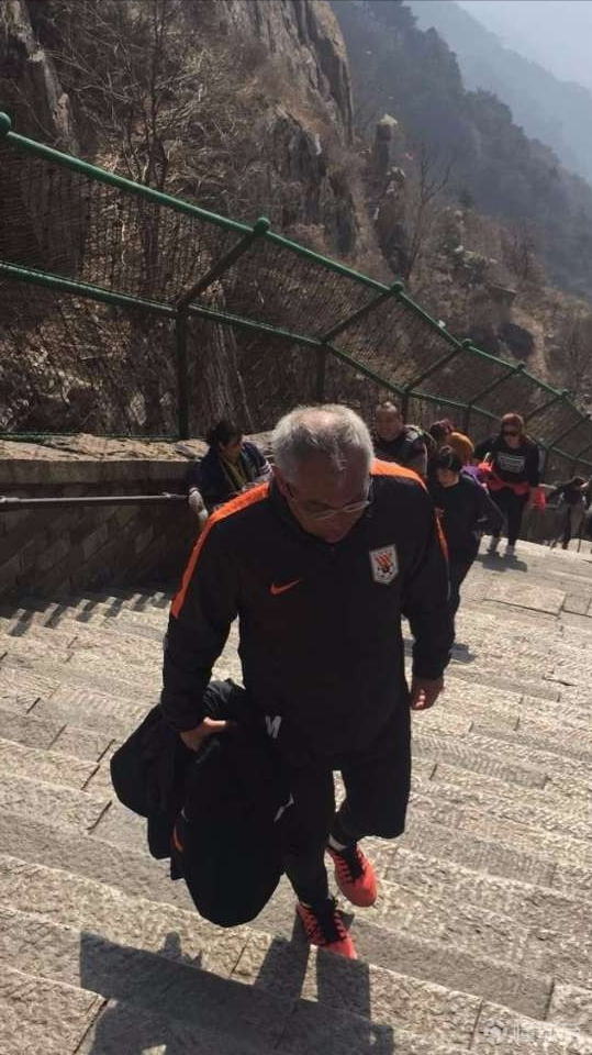 德国教练马加特带队山东鲁能的时候,为了解决球队“步行者”顽疾,专门给鲁能组织了高强度的训练,把一众球员“折磨”得够呛! 按照惯例,山东队过年都要去泰山祈福。以往球员都是坐缆车上去,象征性地祭拜一下,前后十几分钟,也不需要耗费什么体力。 然而在马加特任上,德国老头却展现了他“魔鬼”的一面,他命令大家徒步登上山顶!而且还放出话来:“40分钟登顶的球员,下午不训练!” 队员们也是给整懵了,好你个马指导,大过年的还来这一出!虽然心里有一百个不愿意,但没办法,教练都下命令了,那还不得服服帖帖听话? 就这样,一场登顶祈福之旅愣是被搞成了体能竞赛! 话说这场爬山祈福,队员刘洋用时最短,37分钟就到达了目的地。外援里边,佩莱则是最先到的。 而马加特花了51分钟,考虑到当时老爷子已经64岁了,这个成绩已经相当难得。到了峰顶,老头都有点气喘吁吁了…… 后来王大雷回忆起当时场景,也是哭笑不得: “那大楼梯,巨长!真心爬上去的!老头上去自己都蒙了,他还说我以为泰山没这么高!但是人老头就是厉害,60多岁的人了,自己就走上去,一点也没要谁搀一下什么的!” “我后来还和小金(金敬道)说,我说这个教练要是带我们带个三年的话,那我们就厉害了!” 当然,马加特也不是一点都不通融的主,在领略到泰山的真实高度后,马指导还是松了口,给全队球员都放了一个下午的假,让大家伙好好休息了一波。 对此王大雷就笑道,徒步爬泰山,马加特是自己给自己挖了一个大坑!