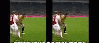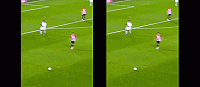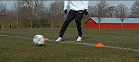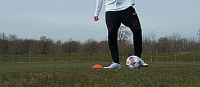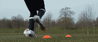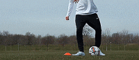 做这个动作最常见的方法是假装触球,我们做一个真的触球动作,但是我们不触球,让球直接穿过我们的腿,以此来虚晃对手。很重要的一点是,假装触球要做得像,这样对手才会跟着我们,而不是球。