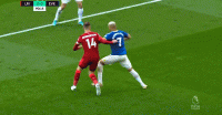 本场比赛中,埃弗顿边锋安东尼-戈登屡屡通过反击给利物浦的防线制造了威胁,其中还有两次在禁区内倒地的情况,其中一次被主裁认定为假摔,第二次倒地也没有获得点球。