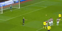 而主罚球员要做的,是想办法让门将把发力脚暴露出来,于是,在触球之前跳一小步,与门将错开节奏,便能观察到对手的发力脚及发力方向。此时,主罚球员只需把球踢向另一侧便万事大吉。