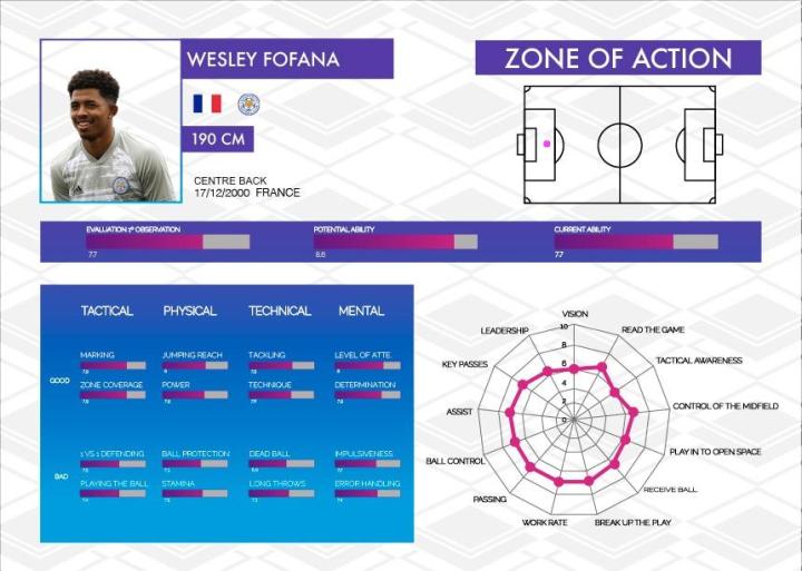 2000年12月17日出生的韦斯利-福法纳有科特迪瓦血统,这位年轻的潜力股中卫是一位右脚球员,身高190cm。
