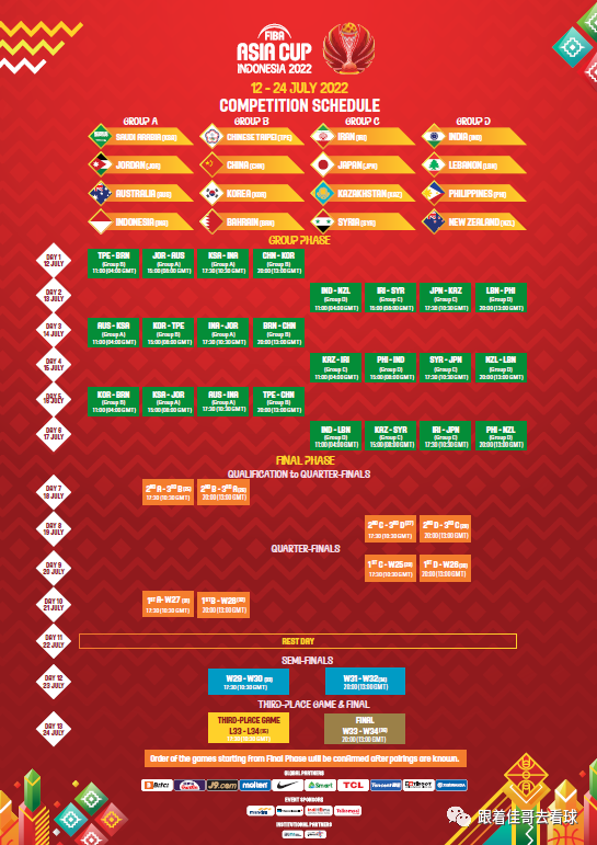 第二站:男篮亚洲杯,7月12-24日,印尼雅加达