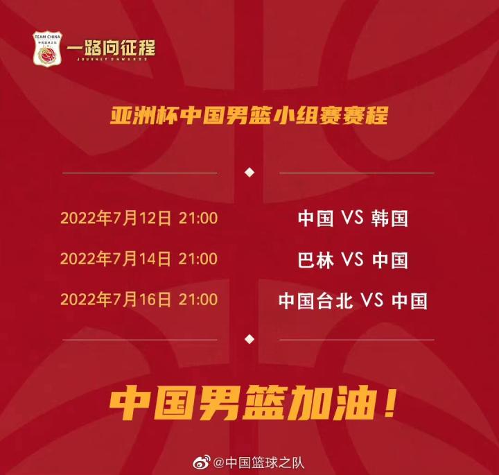 中国男篮国家队2022夏季赛程一览