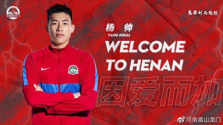 经双方俱乐部与球员协商一致,河南嵩山龙门足球俱乐部和杨帅完成签约,杨帅正式加盟河南!
