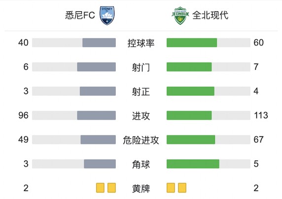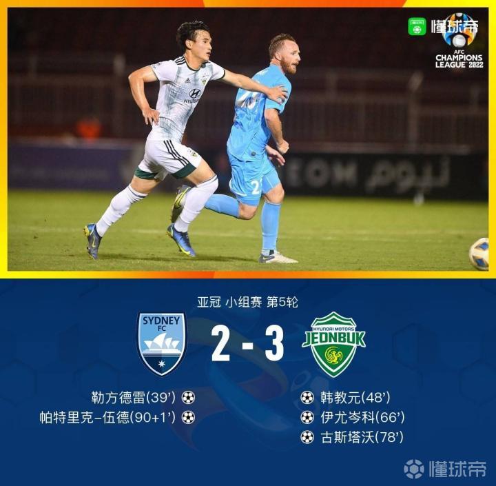 悉尼2-3遭全北现代逆转提前出局,韩教元传射建功