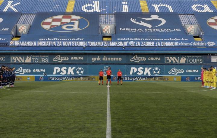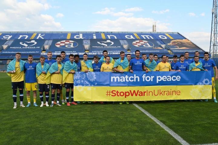 赛前,和前几场一样,基辅球员身披国旗出场,双方共同举起这印有停止战争的标语,呼吁停战。然后双方一同举行了一个小的默哀仪式