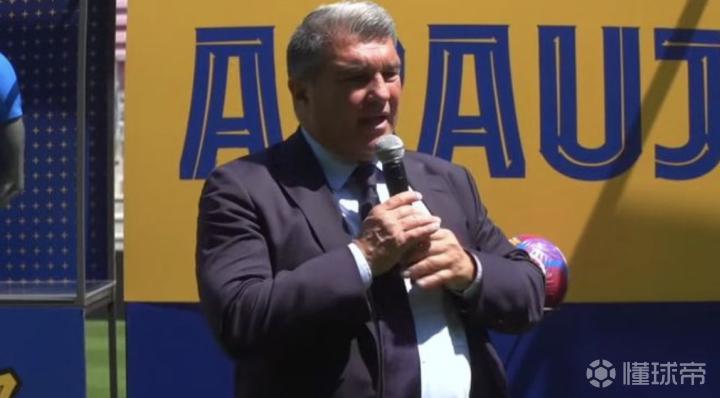 巴萨今日为阿劳霍举办了续约仪式,主席拉波尔塔在现场感谢了阿劳霍的付出。