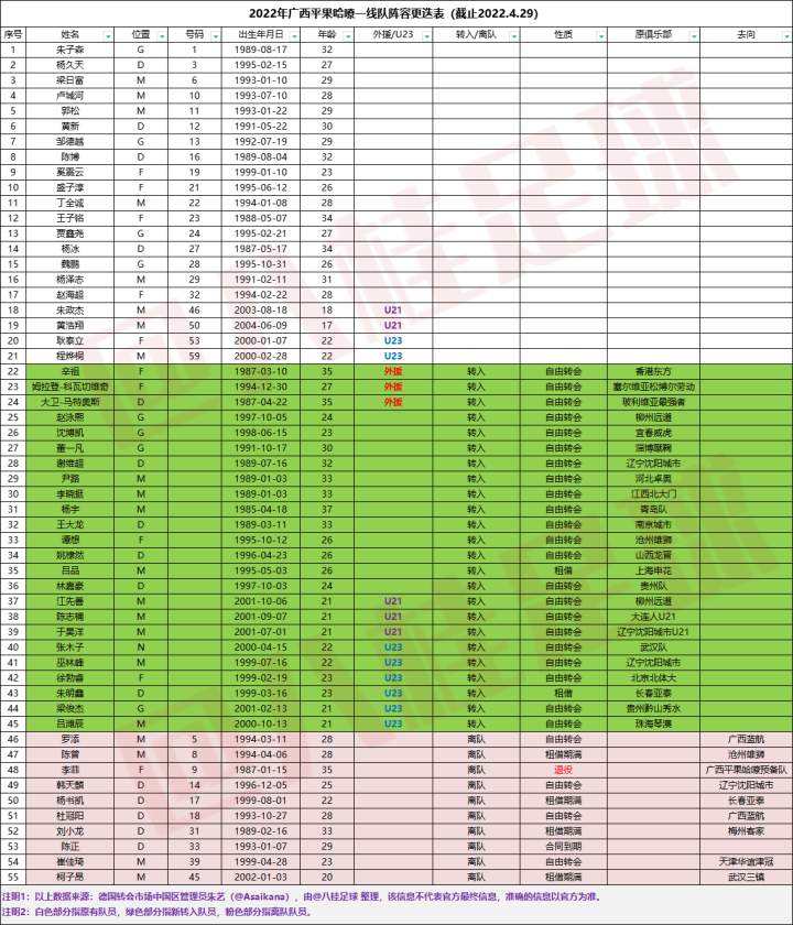 (资料据自、鸣谢:德转中国区管理员Asaikana、八桂足球、广西平果哈嘹足球俱乐部、耀素材,整理编辑:耀武酒肆工作室)