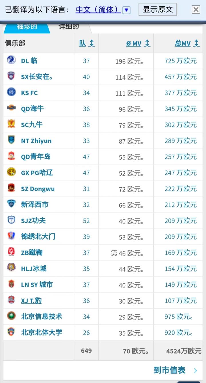 (广西平果哈嘹目前全队身价247万欧元,在整个中甲联赛排名第八)